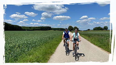 Mit Moni und Peter beim Wandern am Elbsee. Eine kurze Pause in einem Gasthaus war dringend nötig, ein kühles Bier war dann unsere Belohnung.